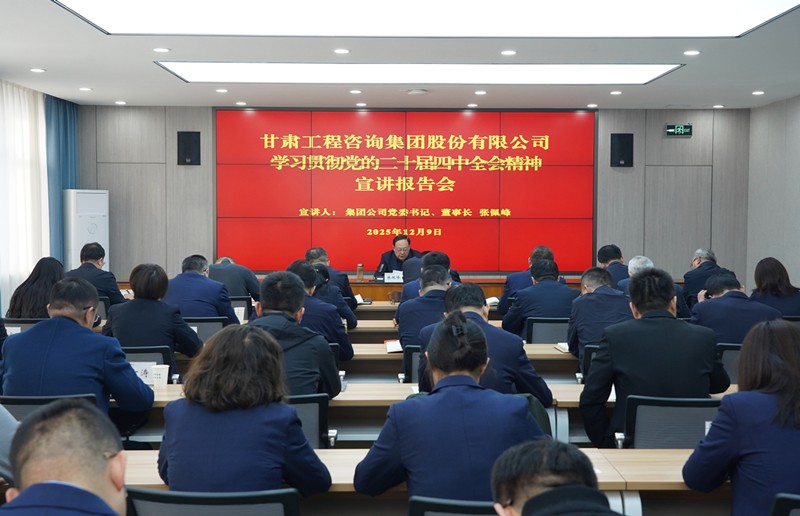 12月9日,甘肅工程咨詢集團(tuán)召開學(xué)習(xí)貫徹黨的二十屆四中全會精神宣講報告會。集團(tuán)公司黨委書記、董事長張佩峰作專題宣講報告,圍繞全會重大意義、核心要義及“十四五”發(fā)展成就、“十五五”時期目標(biāo)任務(wù)等進(jìn)行了系統(tǒng)闡釋,并結(jié)合集團(tuán)實際提出貫徹落實的思路舉措。
