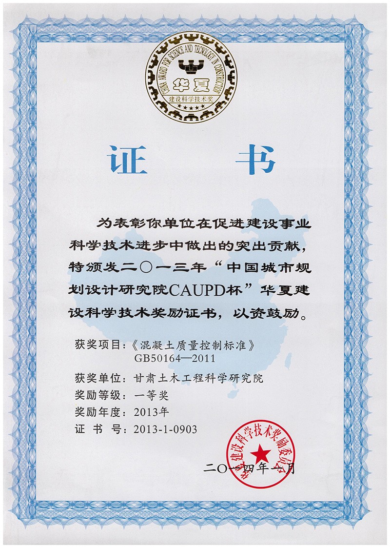 二0一三年“中國城市規(guī)劃設(shè)計研究院CAUPD杯”華夏建設(shè)科學(xué)技術(shù)獎