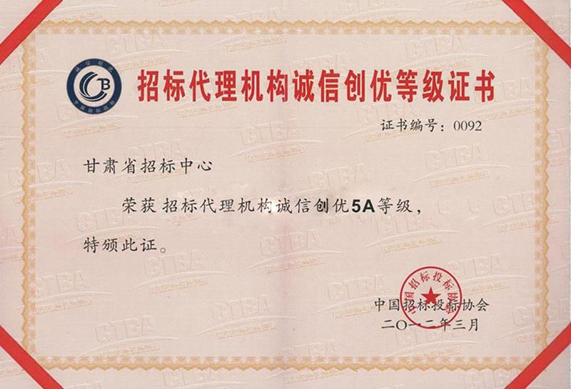 招標代理機構誠信創(chuàng)優(yōu)登記證書