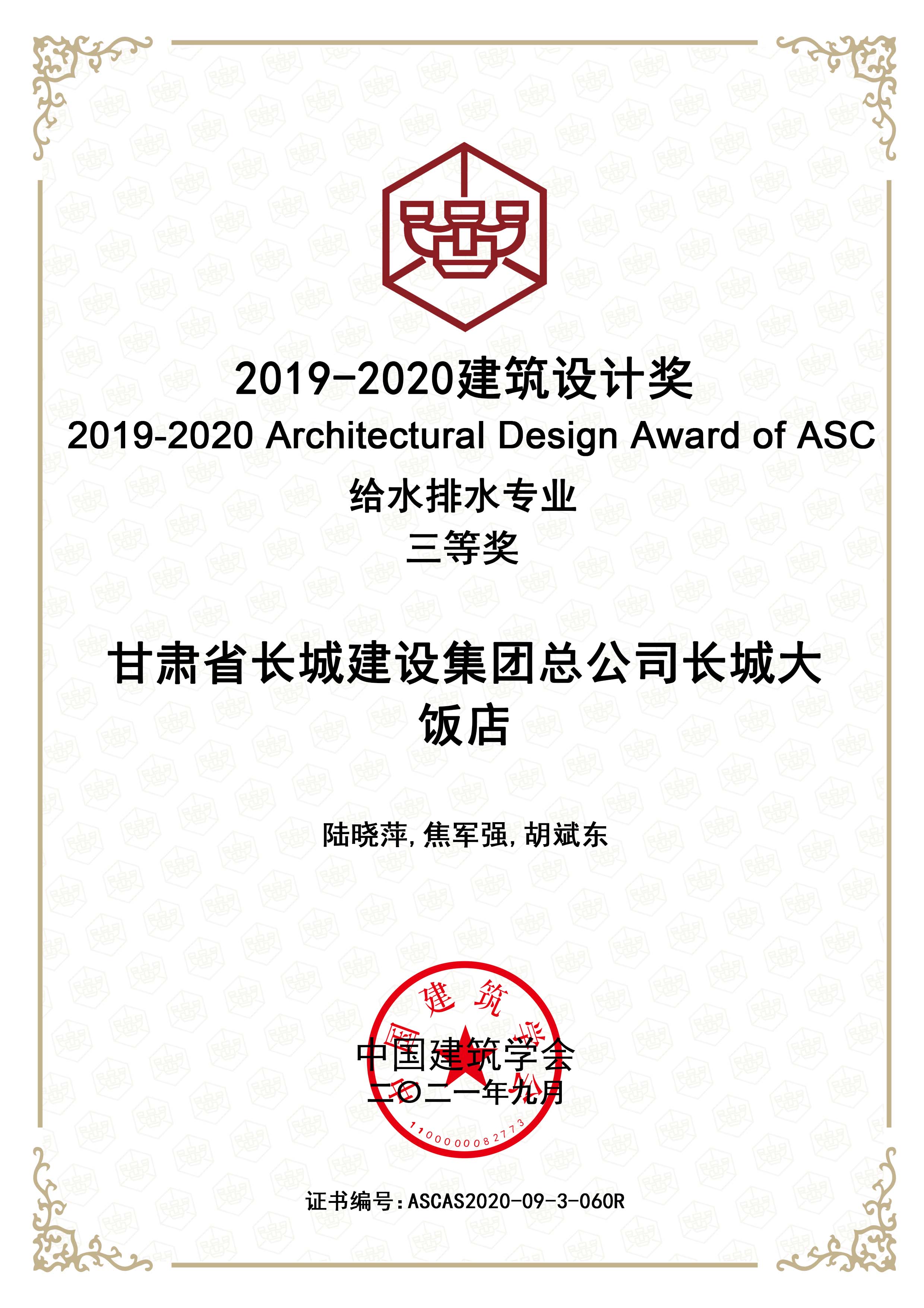2019—2020建筑設(shè)計獎給排水專業(yè)三等獎